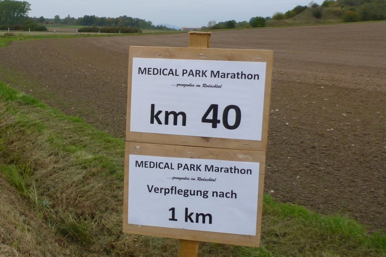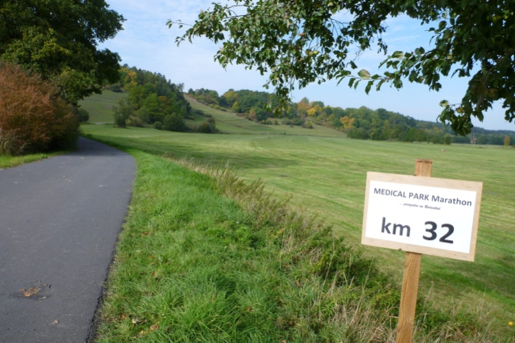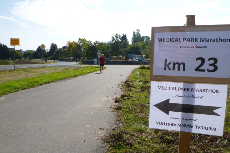 Die Steigung endet und auf dem Radweg. Neben der Kreisstraße erhalten wir ein paar Höhenmeter zurück. Zwei Feuerwehrleute sperren für mich die Straße und dann kommt – nein, kein Endspurt. Denn die letzten 500 Meter gehen ansteigend zur Zufahrt zum Medical Park, wo ich nach 3.54 Stunden die Ziellinie überschreite. Geschafft.