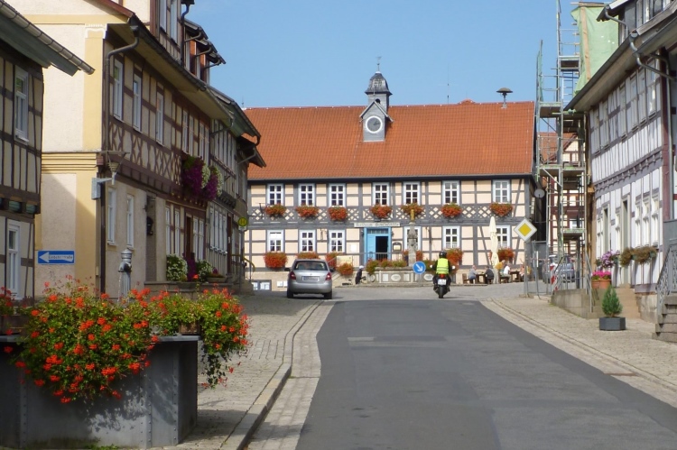 Seit dem Jahr 1394 hat der Ort Stadtrecht. „Thüringisches Rothenburg“ oder „Töpferstadt“ sind die Beinamen der Stadt, die auf Fachwerk-Fassaden hinweisen und auf das Handwerk, das hier verbreitet war. Nach einem Tankstopp geht es weiter. Es ist mittlerweile einsam geworden. Nur weit vor mir sehe ich jemanden laufen, hinter mir ist keiner mehr.