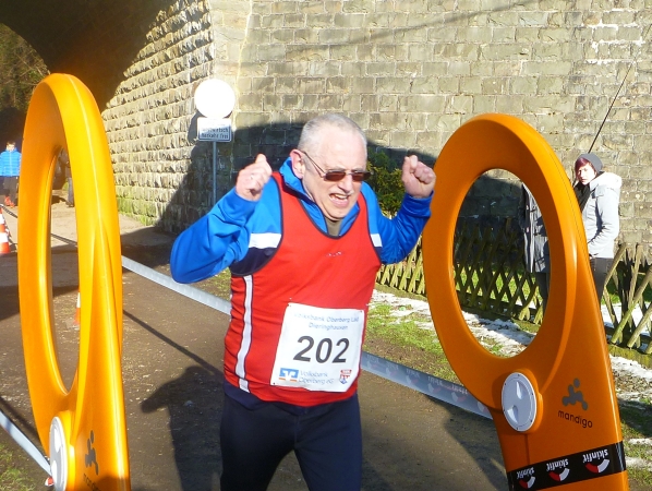 Irgendwie finde ich es schade, dass der Lauf bald zu Ende ist. Ich wäre gerne noch ein wenig mehr in der tollen Winterlandschaft gelaufen. Aber eine Rechtskurve bringt mich zur Bahnunterführung und ich biege links ab zu Ziel. Nach genau 1.02 Std. ist der Spaß für heute vorbei.