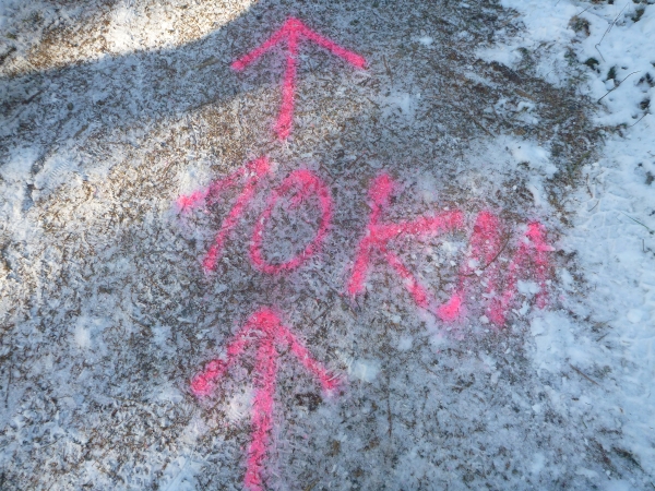 Bei Kaiserwetter geht’s links um die Kurve und direkt bergauf. Die Sonne lacht, es ist trocken und windstill. Aber es hat in den letzten Tagen reichlich Schnee gegeben und der liegt auch auf der Strecke, zum Teil verfestigt und vereist. Ein Terrain so richtig nach meinem Geschmack. Trailschuhe sind heute ein Muss.