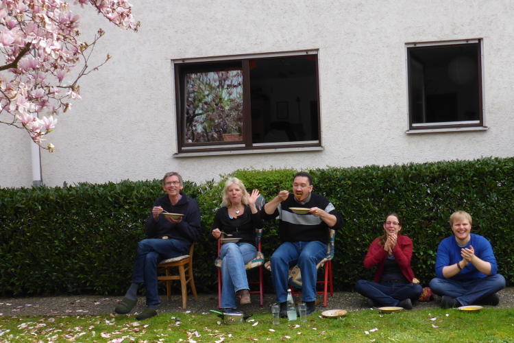 Am Fritz-Horch-Weg wabern gewaltige Grillschwaden durch die Blütenpracht einer großen Japanischen Kirsche. Fritz Horch war ein Freiburger Friedenspfarrer, sein zeitgleich lebender Namensvetter August Horch gründete die Audi Werke (Audi = lateinische: Horch!). Die Hindenburgsstraße ist die meistbefahrene Straße Freiburgs, von Radfahrern. Bis 1927 hieß sie noch Geleitstrasse, weil wichtige Personen und Kaufleute ab hier von der Stadt Freiburg Begleitschutz erhielten. Hätte ich jetzt auch gerne. Ich werde zunehmend langsamer.