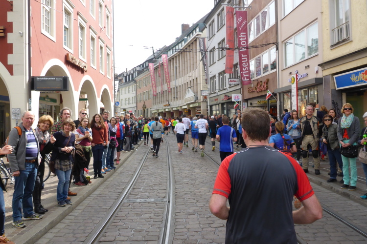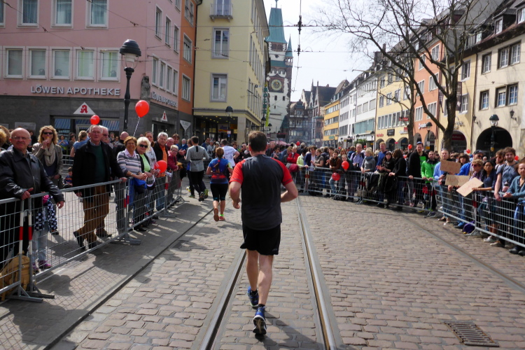 Es gibt kaum einen Stadtmarathon, der mehr junge Läufer zum Mitmachen motiviert als der in Freiburg. Hier braucht man keinen Bambinilauf, um aufgeregt an der Startlinie zu stehen. Der Campus liegt direkt am Start/Zielgelände, vom HBF sind es wenige Minuten mit der Strassenbahn, und vor allem: Die Startzeit ist mit 11:15 Uhr sehr studentenfreundlich.