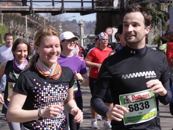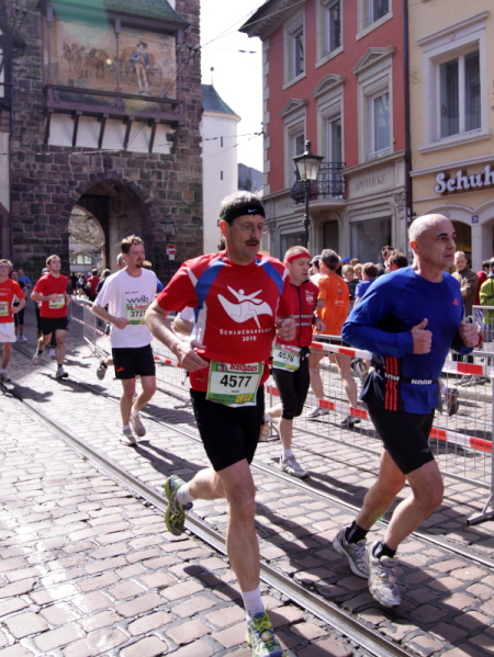 Der Freiburg Marathon ist einfach eine geniale Veranstaltung. Die Infrastruktur mit den Messehallen, die jetzt noch attraktivere Strecke (vor allem die letzten Kilometer sind nicht mehr so elend lang), die Stadt, die Musik, die Zuschauer, die Organisation, einfach alles …