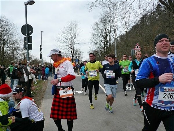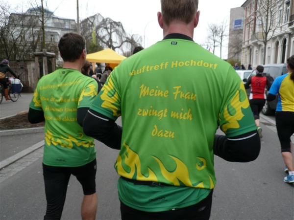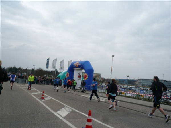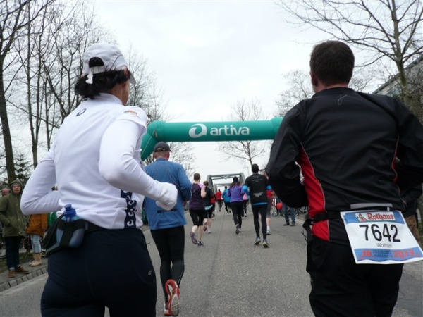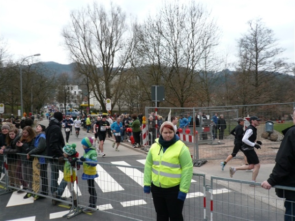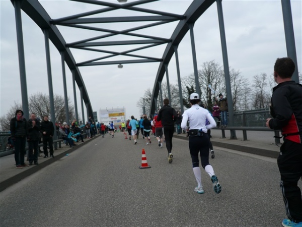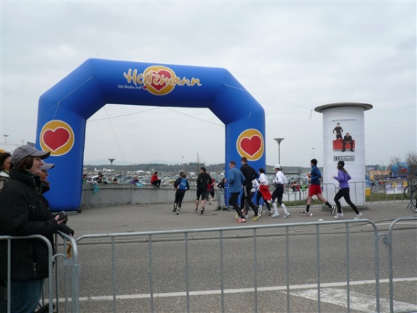 Nein, im Ernst, die Strecke ist wirklich schön, der Service gut, zur Abrundung fehlen nur ein paar Grad und die passenden Sonnenstrahlen. Mit 1:59 liege ich zwar gut in der Zeit, merke aber vor allem die Füße doch mehr, als mir lieb ist. Die Schuhe werden hinterher direkt in der Tonne landen. Mein treues Weib erwartet mich leicht frierend zur Anfeuerung, zur Belohnung gibt’s einen salzigen Schmatz und ein kurzes Schwätzchen, soviel Zeit muß sein.