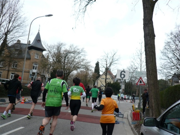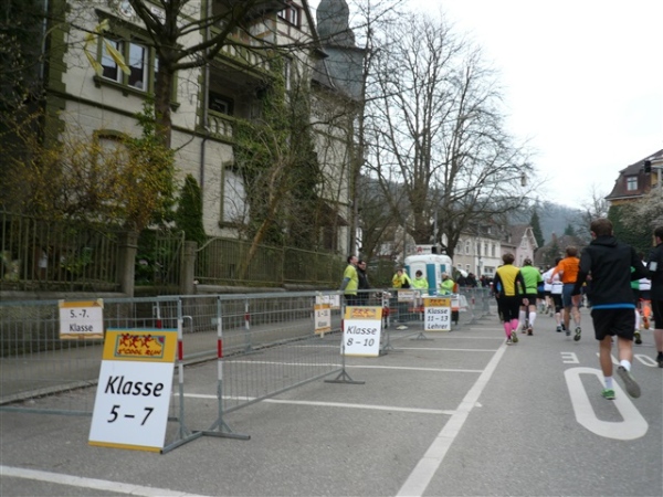 Kurz vor km 6 kommt die erste Wechselstelle des S’Cool-Runs, aber die dreißig Schüler-/Lehrerstaffeln sind nach uns gestartet und haben uns noch nicht eingeholt. Gähnende Leere also. Dann die Mozartstraße, ein Gedicht und eine weitere Steigerung gegenüber der Haydnstraße. Hier könnte ich es auch aushalten.