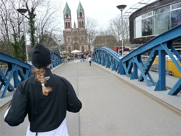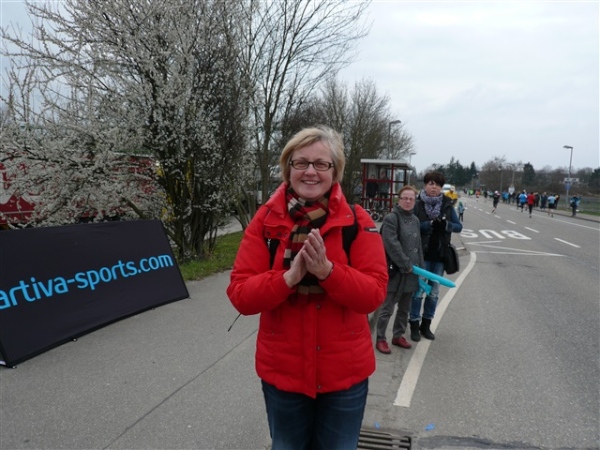 Jetzt nicht mehr in Patrics Windschatten laufend ist Petra Kastrowiak. Die läuft auf dem finalen km an ihrer Familie vorbei, der Mann fotografiert sie, die Eltern schieben den Nachwuchs im Kinderwagen. Ihr hättet erleben sollen, wie der Panz reagiert hat, als er seine Mutter entdeckte! Herrlich, diese Begeisterung! Das hätte man für seine spätere pubertäre Phase filmen müssen.