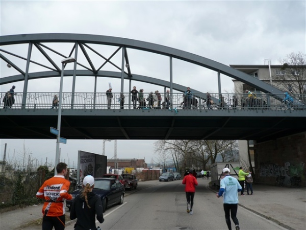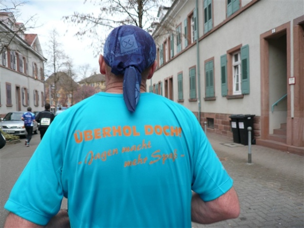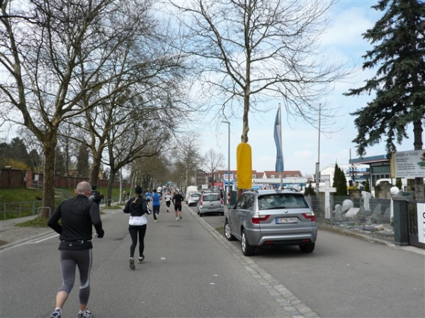Papperlapapp, Hardrock und Schwermetall for President, erzählt mir nichts! Heavy Metal for the Battle! So etwa nach 30 km wird es mal wieder zäh, der 4 Stunden-Zugläufer holt mich ein. Dranhängen, lautet die Devise, denn quälen kann ich mich. Glücklicherweise entpuppt Patric Marquart sich nicht nur als m4y-affin, sondern auch als äußerst kommunikativ. Als ich mich darauf einzustellen beginne, schwätzchenhaltend das letzte Viertel zu überstehen, biegt der Junge zum Pinkeln ab und vorbei ist die Herrlichkeit.