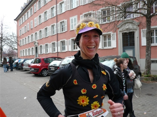Weiter, letzte Meter. Das Finish lohnt sich heute übrigens besonders, denn der Veranstalter verlost unter dem Motto „10 Jahre – 10 Reisen“ zehn Kurzurlaube. Einzige Bedingung ist das Überqueren der Ziellinie hoch erhobenen Hauptes und auf eigenen Füßen. Ich habe den Kürbis sehr weit oben und soweit ich es verfolgt habe, auch noch die eigenen Quanten an den Stelzen, genutzt hat’s aber nicht, denn die Glücklichen sind andere. Dabei hätte ich doch zum 75. (nicht Geburtstag, Mensch!) ein Geschenk verdient gehabt.