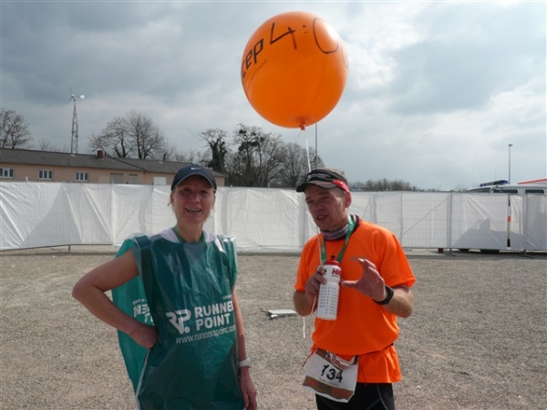Dann treffe ich nochmals den künftigen Mauerwegläufer Heiko, der irgendwie plötzlich zum 4 Stunden-Zugläufer mutiert zu sein scheint. Ja, trainingsmäßig muß man 100 Meilen schon anders angehen als einen Marathon: Um drei Uhr aufzustehen, um dann vor der Arbeit 30 – 40 km abzureißen, dazu gehört schon etwas. Dir alles Gute am 17./18. August!