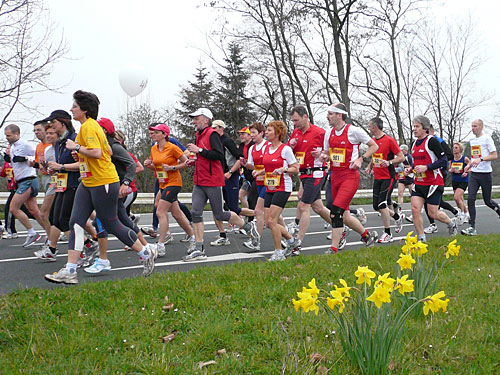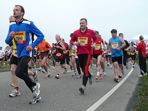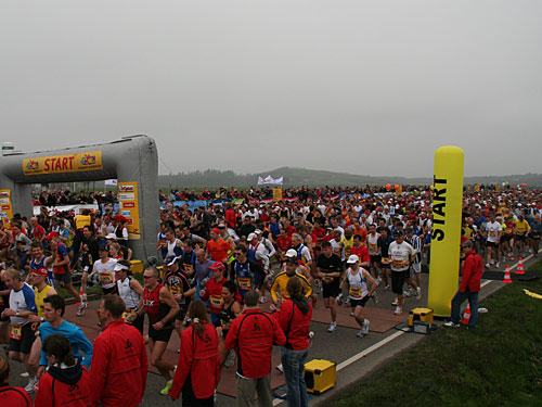 Nachdem man die Läuferinnen und Läufer für den Marathon (Start 11.20 Uhr) und Halbmarathon (Start 13.00 Uhr) zeitlich getrennt auf die Strecke lässt, treten die bei meiner letzten Teilnahme 2005 bemängelten Engpässe nicht mehr auf, allerdings ist das Teilnehmerfeld auch auf 7.606 Finisher (bei 11.011 Anmeldern) zurückgegangen.