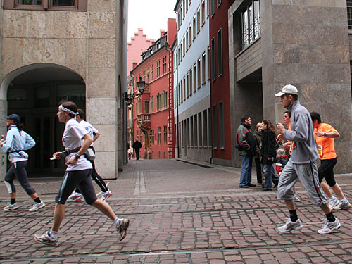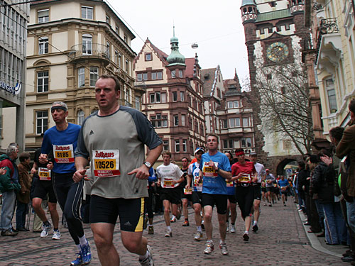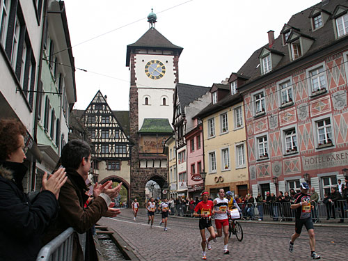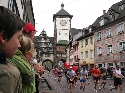 Eine Riesenstimmung auf der Strecke mit 42 Musikgruppen von Rock über Blasmusik bis zu Samba. Die Freiburger stehen hinter ihrem Marathon wie eine Eins. Höhepunkt die Innenstadt am Martins- und Schwabentor.