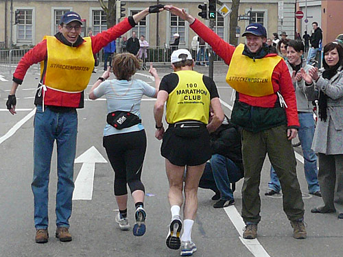 Ich finde es angenehm, dass ich nicht erst durch’s Ziel und dann auf die zweite Runde muss, wie es zuvor immer der Fall war. Auch die Eliteläufer werden diese Neuregelung zu schätzen wissen, weil sie den verdienten Applaus nicht mit den Marathonis teilen müssen, die hier erst Halbzeit haben.