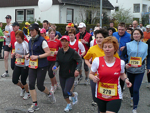 Die kritischen ersten Kilometer bei einem 2.000 Läufer starken Feld gehen hier ganz problemlos über die Bühne, denn auch in der Berliner Allee stehen beide Fahrbahnen zur Verfügung. Statt Gedränge gibt es rhythmisches Laufen von Beginn an. Entsprechend entspannt ist die Stimmung unter den Marathonis.
