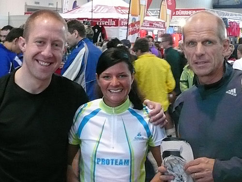 Zuvor empfiehlt sich aber ein Gang über die Marathonmesse, die diese Bezeichnung auch wirklich verdient. 70 Aussteller füllen die Messehalle 2, unter ihnen auffallend viele Veranstalter, die für ihren Marathon werben. Die Besucher nutzen die Chance, Informationen aus erster Hand zu erhalten. In der gleichen Halle ist die Startnummernausgabe und die Pastaparty. Die Gratis-Portion Nudeln kann man sich am Samstag vor, oder am Sonntag nach dem Lauf abholen.