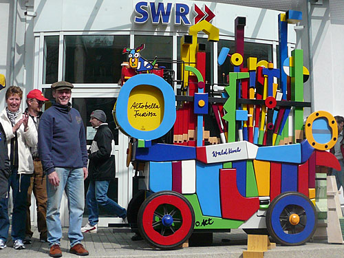 Gleich kommen wir noch einmal zum Schwabentor und genießen die tolle Stimmung. Dann werden in der Hermannstraße aber andere Töne angeschlagen. Eine große Jahrmarktorgel weckt das Interesse der Läufer und Passanten. Vor 200 Jahren hat in Simonswald Ignaz Bruder mit dem Bau einer Drehorgel begonnen. Später, er war inzwischen nach Waldkirch umgezogen, begründeten seine Nachkommen ein Imperium, das mit seinen Musikautomaten, Dreh- und Jahrmarktsorgeln weltberühmt wurde. Später, vor dem Gebäude des SWR sehen und hören wir ein weiteres Prachtstück in modernem Design.