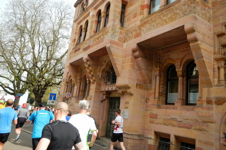 Am Stadtgarten entlang geht es auf den Leopoldring. Auf der anderen Straßenseite kommen die entgegen, welche am Staffelwechsel schon vorbei sind und die Schlaufe zurück zum Karlsplatz bereits im Sack haben. Nach der leichten Steigung bis zum Schwabentor geht es hinunter zur Kartäuserstraße. Wer uns hier entgegenkommt, hat schon sechs Kilometer Vorsprung, ist vermutlich aber mit der ersten Startgruppe losgerannt.