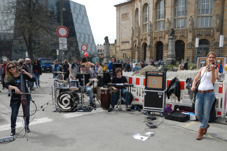 Schon vor dem nächsten Kilometerschild ist die nächste Band postiert. Dass ich als Läufer immer nur eine kurze Kostprobe bekomme, ist eigentlich schade. Rock and run heißt das Motto. Noch rockt es und es läuft ganz flott.