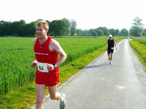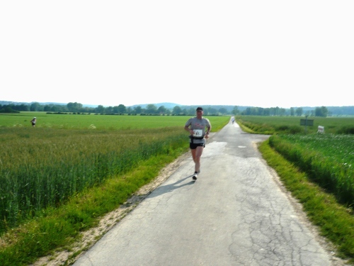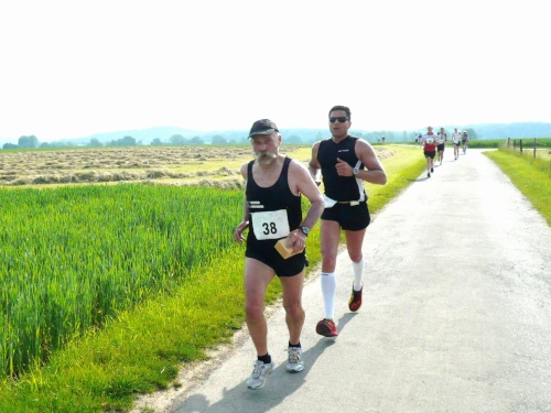 Mir kommen die schnelleren Läufer entgegen, nicht laufend, sondern schleppend und schwitzend, ausgeschiedene Salzinseln marmorieren die Funktionskleidung.  Atemtakt, Beinarbeit, Fehlanzeige. In den Gesichtern die gesamte Pein ihrer Existenz, aussehend wie die geschlagenen Soldaten Napoleons. Doch ich sehe anscheinend nicht besser aus. Wenn ich so weiterrenne, werde ich zusammenbrechen oder aufs Siegertreppchen der Veteranenklasse kriechen. Zwischen den reifenden Rapsfeldern steht die heisse, stinkende Kohlsuppe und raubt mir den Atem. Ich hasse Raps.