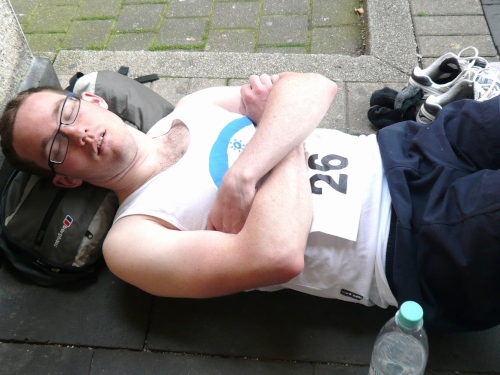 Die Luft über den Feldern flimmert. Wir kämpfen uns von einer Verpflegungstation zur nächsten. Die Helfer sehen verbrannt aus . Wendepunkt. Ich laufe zurück, viele laufen davon, einige bleiben taumelnd auf der Strecke, werden von Sanitätern versorgt. Mir geht es gut. Wie ein Archaebakterium, das in heißen Geysirquellen lebt und seine Energie, seinen Atem aus anorganischen Verbindungen wie Wasserstoff, Kohlendioxyd und elementaren Schwefel zieht, so ziehe ich meine Energie aus diesem Kampf. Nur habe ich keinen Schweiss mehr und die Millionen Kapillare, die ich mir durch hartes Training in meinen Beinen gebildet habe, ziehen mich mit ihrem glühenden Blut nach unten.