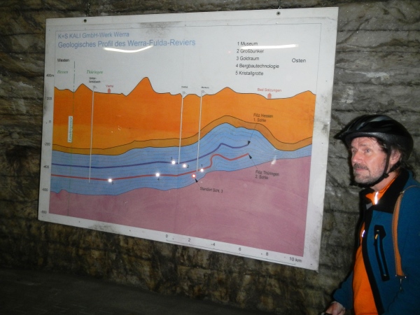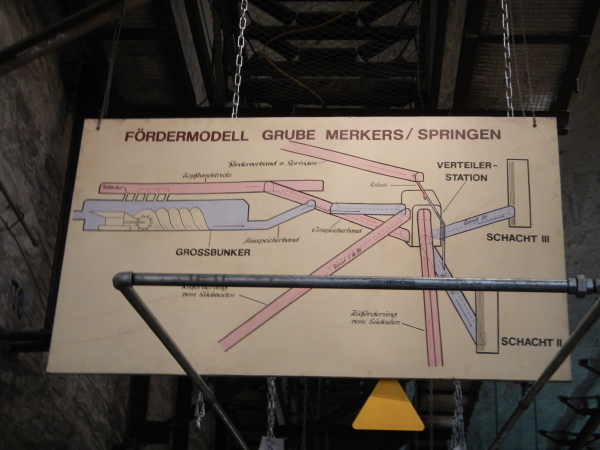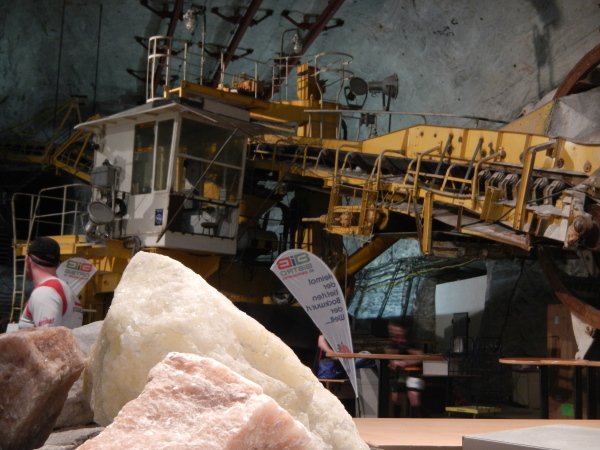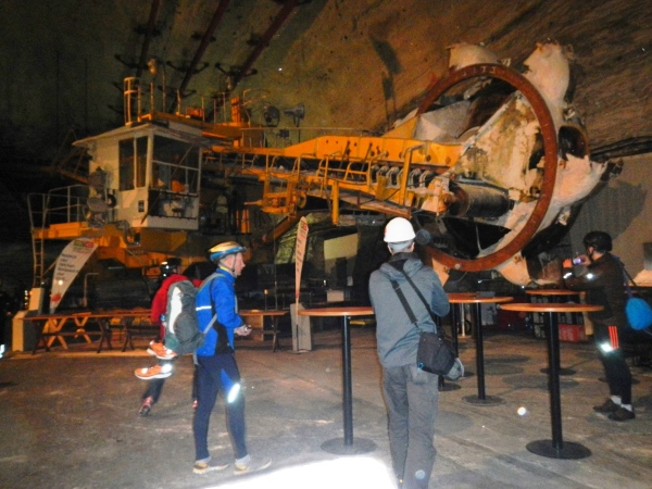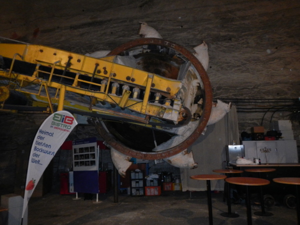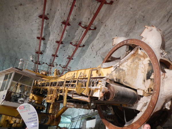 Das Ausmaß dieser Halle mit ihren 250m Länge, über 20m Breite und einer Höhe von gut 15m ist beeindruckend, ebenso der darin stehende Schaufelradbagger, der größte seiner Art, der jemals unter Tage im Einsatz war.