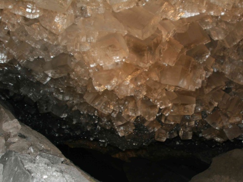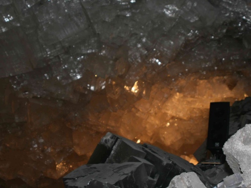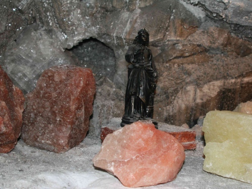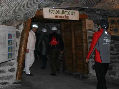 Am Shuttle-Point wurden die Läufer am meisten beklatscht, denn hier traf man auf die Teilnehmer des 10-Kilometer-Laufes, die darauf warteten, ausgefahren zu werden. Dementsprechend leerte sich dafür der Start- und Ziel-Bereich. Als ich hier in der 10. Runde vorbei lief, kam mir noch einmal eine größere Gruppe entgegen. Diesmal waren es jedoch Zuschauer, die die Gelegenheit noch nutzen wollten, die Kristallgrotte zu besichtigen. Mit dabei war auch Silke, u. a. in Begleitung des Marathon-Siegers, die sich dieses Highlight für die Besucher auch nicht entgehen lassen wollten. Tja, wenn ich doch nur ein wenig schneller gewesen wäre.