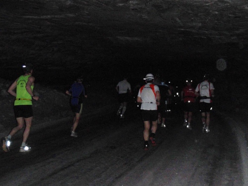 Immer wieder kam man an ausrangierten Fahrzeugen, Loren, abgesperrten Tunneln und gemauerten Gebilden, deren Sinn sich mir nicht erschloss, vorbei. Leider musste ich feststellen, dass die Kompaktkameras bei Verhältnissen wie diesen schnell an ihre Grenzen stoßen und stellte das Fotografieren ein. Allerdings fragte ich mich, wie es wohl den anderen Läufern ergehen würde, denn es waren sehr viele mit einem Fotoapparat unterwegs.