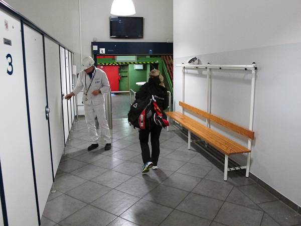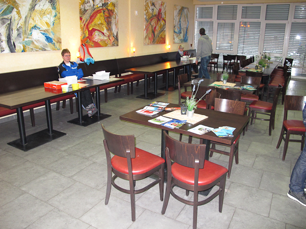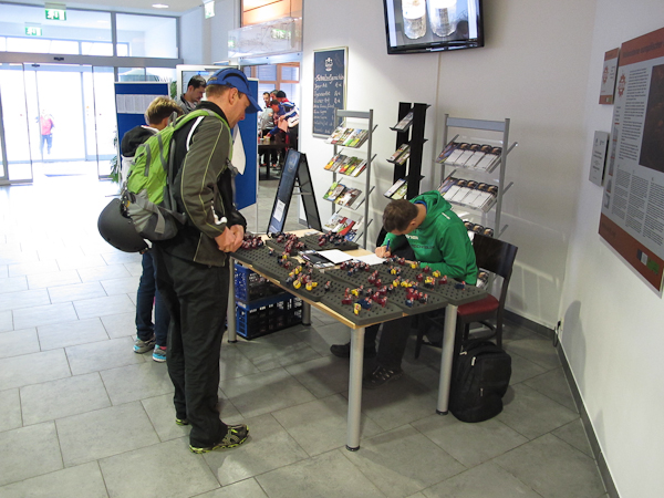 Jetzt also auch hier - das Teilnehmerlimit von 500 Läufern ist erreicht, eine Nachmeldung nicht mehr möglich. Am Besuchereingang zwischen Kasse und Souvenirshop befindet sich das Restaurant, in dem wir unsere Startunterlagen ausgehändigt bekommen. Mit der Startnummer erhalten wir im Anschluss einen Chip, der an einem Gummiband befestigt ist und um das Handgelenk gezogen wird. Er dient zur Zeitnahme- und Identifikation an der Kontrollstelle des Start- und Zielbereiches.