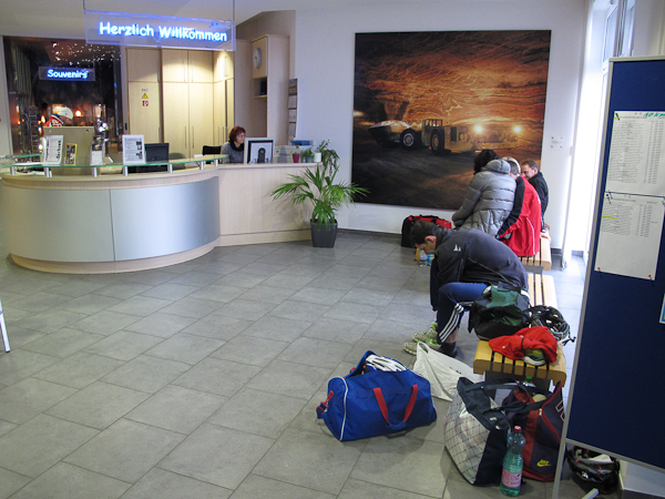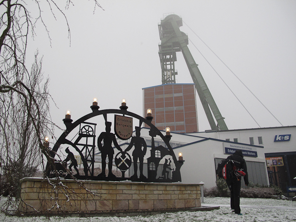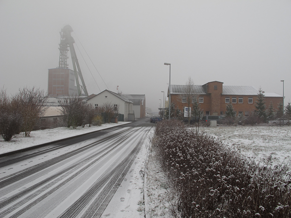 Beißender Wind fegt über den Parkplatz, Kälte zieht durch jede Naht und kriecht uns bis ins Mark. Einige nicht wetterresistente Sportler laufen schnell durch den Schneematsch zum Eingang in die schützende Unterwelt des Bergwerks. Mancher bleibt kurz stehen, schaut auf den Förderturm hinauf, doch die kalte Luft treibt jeden schnell weiter.
