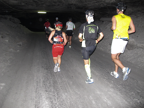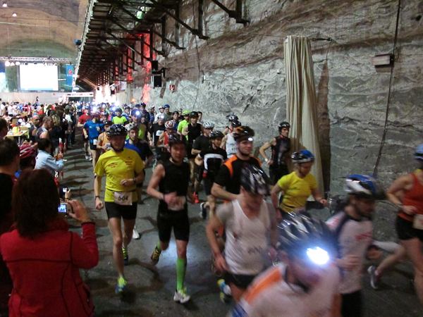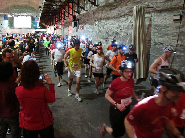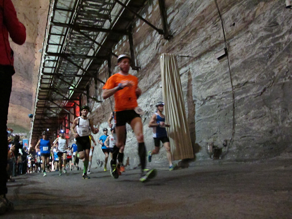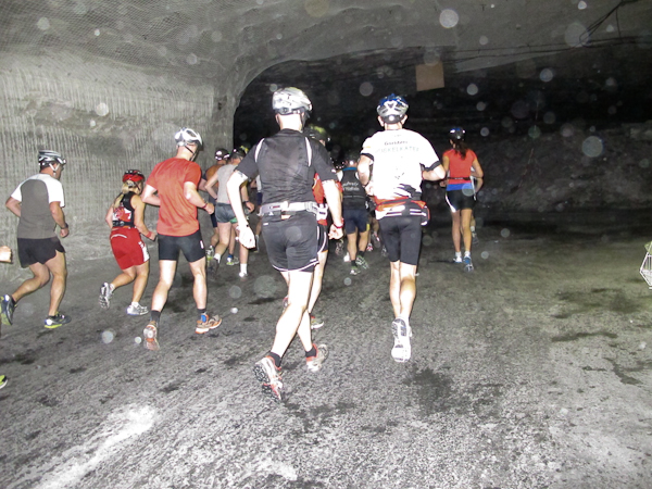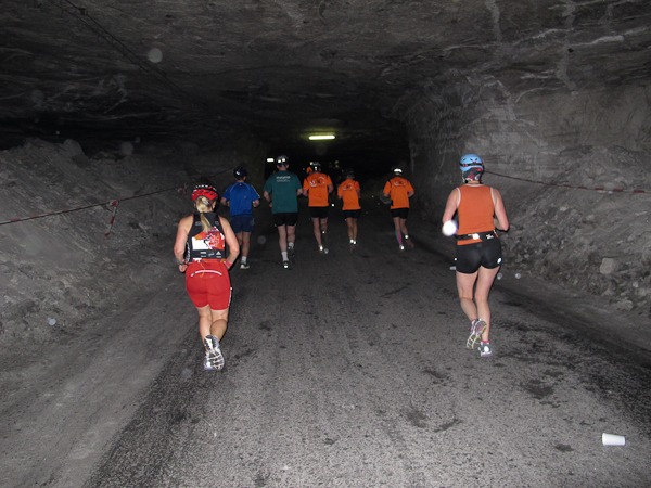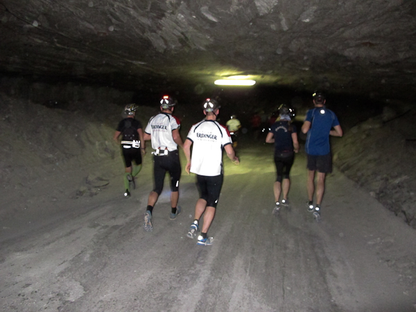 Es ist hell als der LKW nach der holprigen Fahrt durch das Gewirr von Schächten nach einigen Minuten im einstigen sogenannten Großbunker zum Stehen kommt. Wir trauen unseren Augen nicht, denn vor uns liegt eine beeindruckende und von Menschenhand erschaffene Höhle, die im künstlichen Licht erstrahlt. Sind wir angekommen im Zentrum der dunklen Macht, in des Teufels Küche? Sind wir alle Sünderlein und warten am lodernden Flammenort nun auf das Fegefeuer? Wo bis 1989 annähernd 50.000 Tonnen Rohsalz eingelagert werden konnten, bietet der Großbunker heute Platz für hunderte Läufer und Besucher.