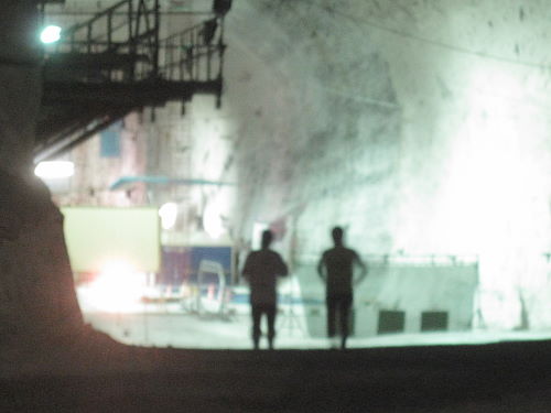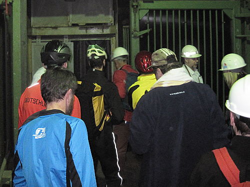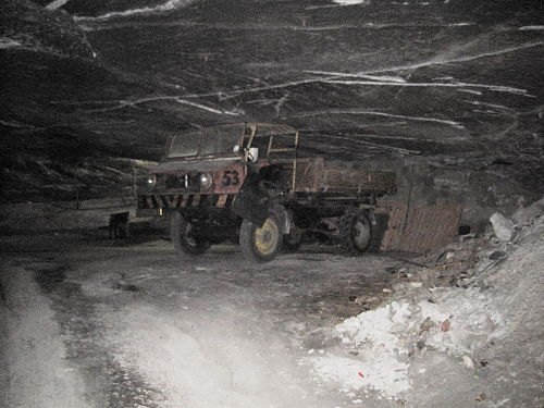 Auch das Problem, wie die Kleinlastwagen, mit denen wir transportiert wurden, nach unten gekommen sind, konnte ich klären. Man hängt die einfach senkrecht unten an den Förderkorb des Aufzugs! Nur die noch größeren Geräte müssen in Teile zerlegt und unten wieder montiert werden.