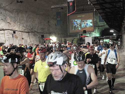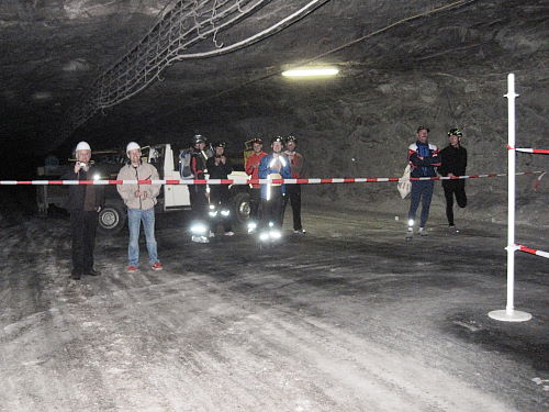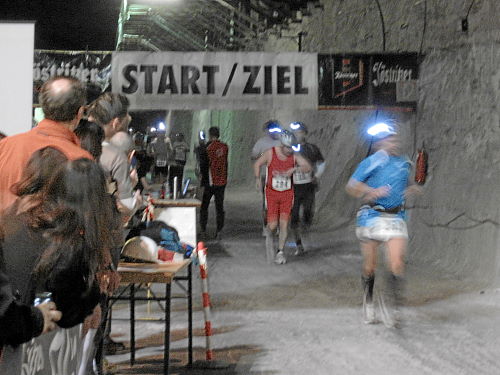 Wenige Begleiter im Zielbereich, immer wieder Besucher des Bergwerks, vor allem im Bereich des Wendepunktes.