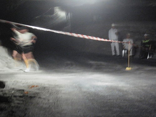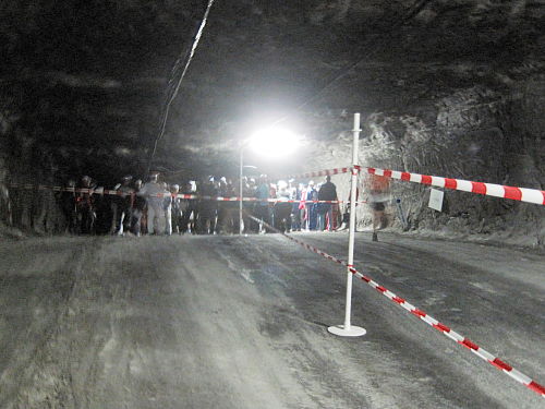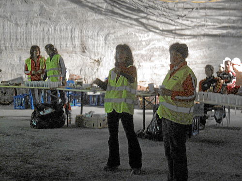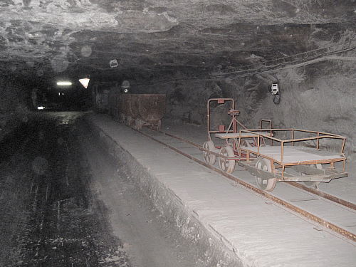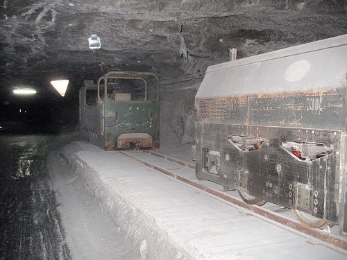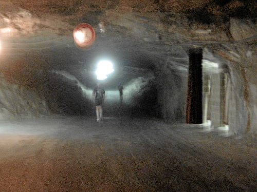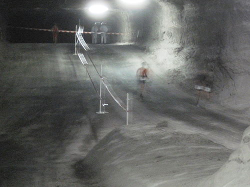 Da man in Merkers nur auf 500 m Tiefe läuft, 200 weniger als Sondershausen, hat man hier auch angenehmere Temperaturen; 21 Grad werden behauptet und das stimmt sicher. Vor allem ist diese Temperatur überall und nicht so schwankend, wie in Sondershausen. Die Luft ist prima und nicht stickig wie manche ängstliche Zeitgenossen vermuten.