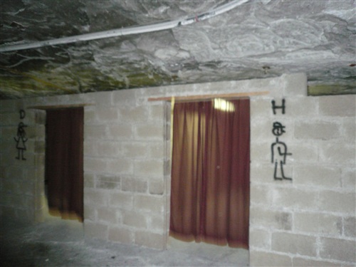 Bestens, kürzeste Wege, Duschmöglichkeit nach dem Ausfahren im Eingangsbereich des Besucherbergwerks.