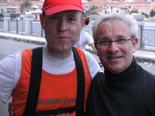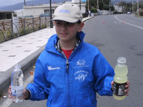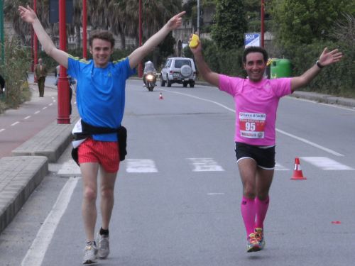 Den ersten See nunmehr zur Rechten komme ich am Restaurant Da Anselmo vorbei. Hier wartet Salvatore und begrüßt mich freudig. Wir waren am Feitagabend zusammen zu einem leckeren Fischessen im Da Anselmo. Salvatore steckt mir eine Wasserflasche in den Trinkrucksack und eine halbe Banane in den Mund. Grazie! Das hat gut getan. Seine Frau Andrea Maria läuft derweil ihren ersten Marathon und schafft ihn mit Bravour. Im Ziel treffe ich beide wieder.
