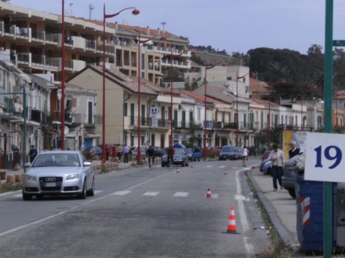 Entlang der schönen Küste geht es zurück Richtung Ganzirri. Kurz vor Ganzirri treffe ich auf Willem, der sich tapfer zum Capo Peloro bewegt. Er hat noch eine längere Strecke vor sich.