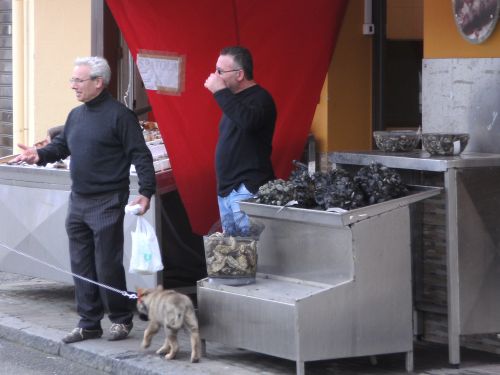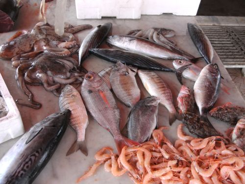 Der Turm am Capo Peloro ist mächtig hoch, so hoch, dass er nicht aufs Foto passt. So laufe ich weiter durch ein kleines Fischerdorf und genieße die Einsamkeit des Läufers mit Blick aufs nun links liegende Meer. Wie im letzten Jahr muss ich bei den Fischläden stoppen. Ach, was gibt es hier nicht alles an Köstlichkeiten. Ich gehe wieder hinein und schaue mir den Fisch und die Muscheln an. Aber es muss beim Anschauen bleiben.