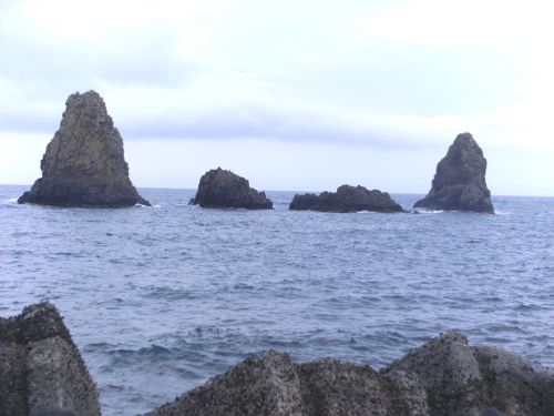 hier hat der Zyklop Steine auf Odysseus geworfen, stehen jetzt als Felsen im Meer