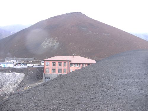 bläst ständig Rauchfahne raus, mit dem Auto Richtung Etna Sud zum Rifugio Sapienza auf 1.910m Höhe befahrbar, per Seilbahn kann man auf über 2.300m Höhe kommen, warme Kleidung empfehlenswert, wir haben noch Schneeflecken auf 1.900m gesehen.