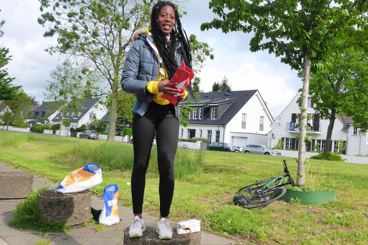 Vor einem größeren Haus haben die Bewohner ihre Mülltonnen mit großen Motivationsschildern beklebt. Fasziniert lese ich die Sprüche, und kann dabei gar nicht fassen, wie viel Mühe die Menschen sich hier machen. In der Lorettostraße scheinen alle Bewohner auf den Beinen und überbieten sich mit Anfeuern.