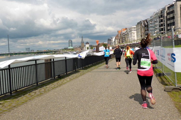 Für mich ist der Düsseldorfer Metro Marathon mein bisher schönster Citylauf. Die Strecke ist toll, die Helfer sowieso, das Verpflegungsangebot an der Strecke ist ok und die Berliner im Ziel ein Highlight. Durch die Staffelläufer ist auf der Strecke immer was los. Von den Meisterschaften hab ich natürlich nichts mitbekommen. Aber darüber gibt es an anderer Stelle viel zu lesen.