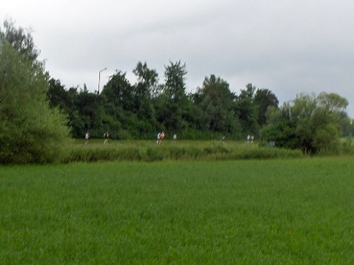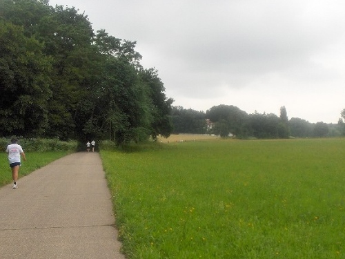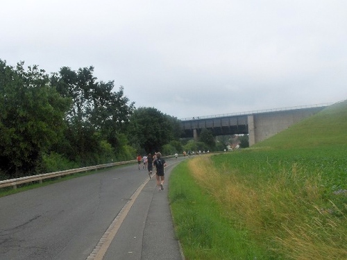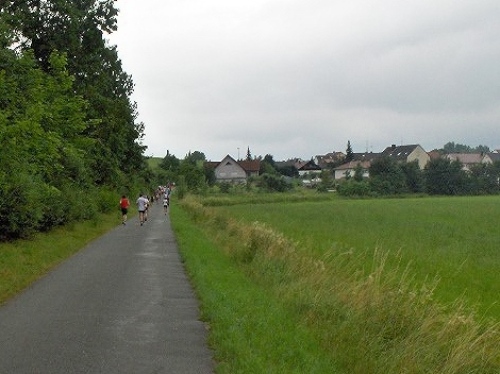Wir überquerten die Regnitz und kamen in den Ortsteil Vach. Nach dem Jubel und Trubel, mit dem uns die Menschen begrüßten, wurde es nun wieder etwas ruhiger, denn bevor wir nach Atzenhof kamen, liefen wir auf einsamen Feldwegen. Das Feld war schon etwas auseinandergezogen und so konnte man seinen Gedanken nachgehen und die Füße einfach laufen lassen.