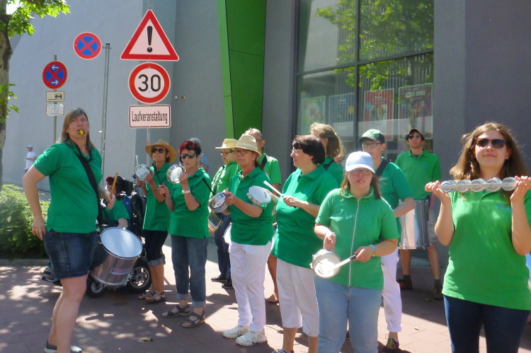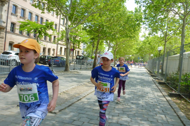 Mein Ziel heute? Viel genießen und erleben, kurz gefasst. 19 Aktionspunkte listet der Streckenplan auf, es wird uns musikalisch nicht langweilig. Die ersten stehen gleich beim Start: Links und rechts feuern uns die kleinen Cheerleader der Farrnbach Shamrocks an. Gestern waren sie noch zahlreich beim Kinderlauf vertreten. Wir laufen ein paar Meter auf der Gustav-Schickedanz-Straße, (das war der Fürther Fabrikant, Unternehmer und Begründer des Versandhauses Quelle) und sehen dann den Hauptbahnhof Fürth. An der Ecke zur Gebhardtstraße die Fürther Sambistas musikalisch den Anfang. Den ersten Kilometer haben wir an der Eisenbahnunterführung schon hinter uns gebracht.