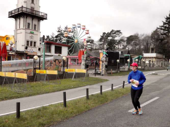 Für mich als heute arg langsamer Läufer zieht sich das lange Straßenstück zu sehr in die Länge, zumal die Kilometer nur alle zwei Kilometer ausgewiesen sind. Erst ab Kilometer 22, auf einer schmaleren Straße, wird es wieder interessanter. Ein geschlossener Vergnügungspark wird passiert und schließlich der Stadtrand erreicht.