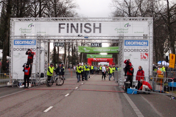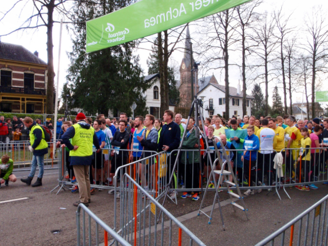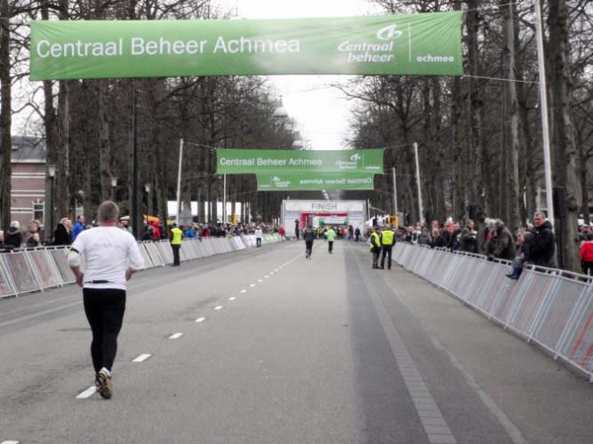 Kurz hinter Kilometer 24 wird es lauter, der Wald bleibt zurück, links geht es wieder in die breite Loolaan und dem Ziel entgegen. Leider tummeln sich die vielen Zuschauer nur im Start-/Zielbereich, wo sie den Start der „Acht von Apeldoorn“ erwarten. Die Läufer stehen schon aufgekratzt bereit.