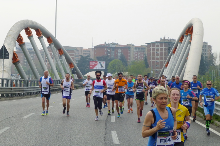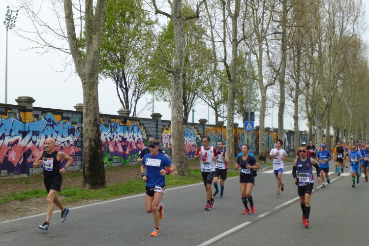 Immer weitläufiger, immer ruhiger wird das Umfeld. Und immer grüner. Zwischen km 19 und 20 umkurven wir den Park Monte Stella. Wenig später folgen wir einer schier endlosen Allee, deren auffallendstes Merkmal eine hohe, von Graffitikunst durchgehend verzierte Mauer ist. Was wir nicht sehen: Dahinter ist die Pferderennbahn des Ippodromo. Von drei Seiten umrunden wir die Rennbahn, wobei einmal mehr die Staffelwechsler einen Kilometer lang für ungewohnte Stimmung sorgen.