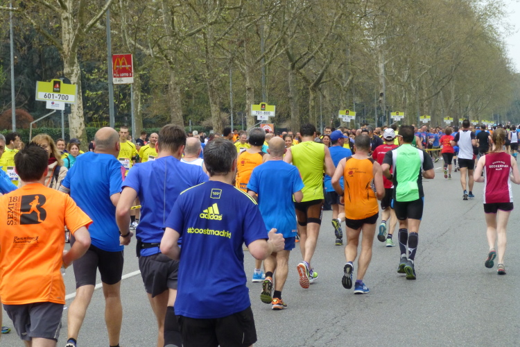 10 km sind geschafft, als wir den Park verlassen. Zu sehen gibt es in den Wohnvierteln auf den Folgekilometern nicht allzu viel, sieht man einmal von der sich beeindruckend über einen ganzen Kilometer hinziehenden Wechselzone der Staffelläufer ab. Aufgekratzt ist die Stimmung, steht doch die Ankunft der schnellsten der eine halbe Stunde nach den Marathonis gestarteten Staffelläufer bevor.