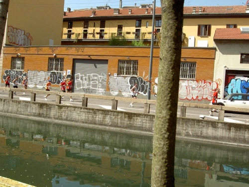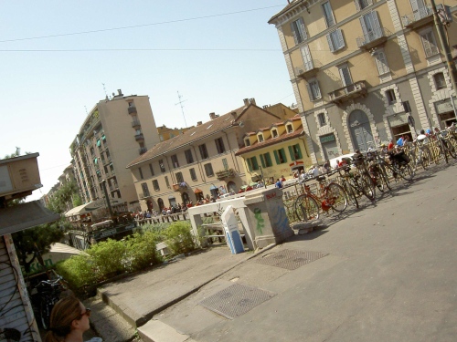 Das nächste Highlight steht bevor: die Navigli. Das sind mittelalterliche Kanäle, die früher ganz Mailand durchzogen und die bis in die fünfziger Jahre des letzten Jahrhunderts noch für den Transport von Sand benutzt wurden. Hier im Süden gibt es noch zwei, an denen sich das Nachtleben der Mailänder abspielt, was wir an diesem lauen Marathonabend noch auskosten werden. Im Moment gibt es hier erst mal eine fetzige Band unter der Porta Ticinese. Hier gilt es auch auf den Boden aufzupassen: Die Straße besteht aus größeren Steinplatten, die sehr unterschiedliche Höhen aufweisen und dazwischen schauen auch noch Straßenbahnschienen hervor. Hier fahren sonst Trambahnwagen aus dem Jahr 1928 – wirklich schön. Apropos: Es gibt auch ein großes technisches Museum in Mailand, fast so schön wie das deutsche Museum in München