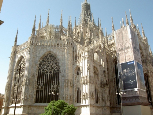 Jetzt kommt aber erst mal das Highlight des Mailand Marathons: Wir laufen auf das Zentrum der Stadt zu und dürfen den riesigen Mailänder Dom einmal umrunden, der ja auch das Logo des MCM darstellt. Ich habe mal gelesen, es ist die zweitgrößte Kirche nach dem Petersdom im Vatikan. Auf jeden Fall strahlt uns der weiße Marmor entgegen. Hier tobt der Bär. Es sind viele Touristen da und dank der Absperrgitter können wir ungestört laufen. Neben der Laufstrecke wird in den Cafes schon gediegen diniert. Kurze Zeit später sehen wir dann den Gegenverkehr, der noch Richtung Duomo läuft. Hier gibt es auch wieder eine Band, die den Läufern und Zuschauern einheizt. Leider lässt der leichte Wind gelegentlich nach, so dass es manchmal recht heiß wird. Aber anscheinend haben sich die meisten Mitläufer mit der Hitze arrangiert. Am nächsten Tag wird man in der Gazzetta dello Sport lesen, dass aber trotzdem 200 Läufer wegen Hitzeproblemen behandelt werden mussten.