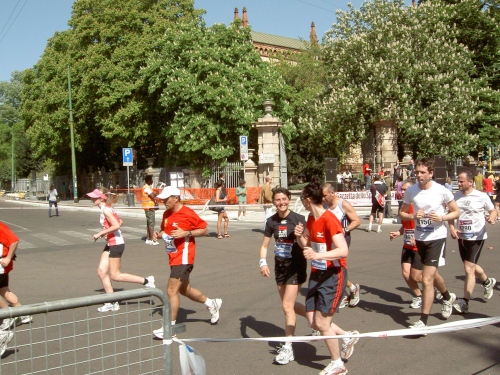 Und so laufen wir durch teure Wohnviertel, leider mit nicht zu vielen Zuschauern. Und man wird viel überholt: Aber das sind immer die Staffelläufer, die sich die Lunge aus dem Leib rennen und dem Mailand Marathon die Teilnehmerzahl von über 10.000 Teilnehmern einbringen, davon 4.025 Marathonis von denen aber nur 3.405 im Ziel ankommen. Weitere 1050 Marathonläufer sind erst gar nicht angetreten. Einen Halbmarathonwettbewerb gibt es nicht. Dafür gibt es einen eigenen Termin ebenfalls im Frühjahr.