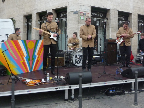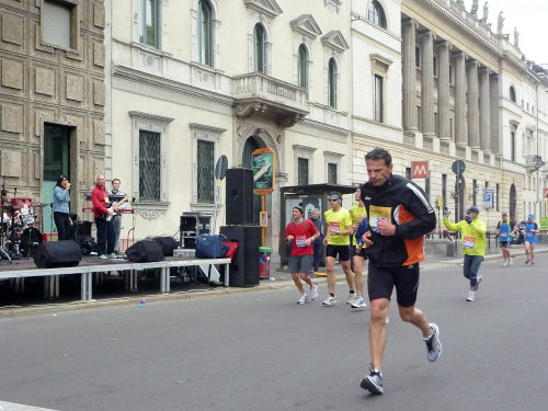 Die Marathonis laufen in entgegengesetzter Richtung weiter, um den Höhepunkt zu erleben, den Dom (Duomo di Santa Maria Nascente), ohne den gesehen zu haben, man nicht in Mailand war. Die Straßen ins Centrum sind belebter als zuvor, es gibt auch ein paar Zuschauer und erstklassige Live-Musik von „Sex Machine“, „Sgt. Pepper“ bis zur Italienischen Schnulze. Jaaa, so muss ein Marathon in der Stadt sein.